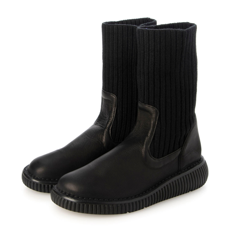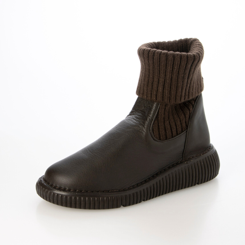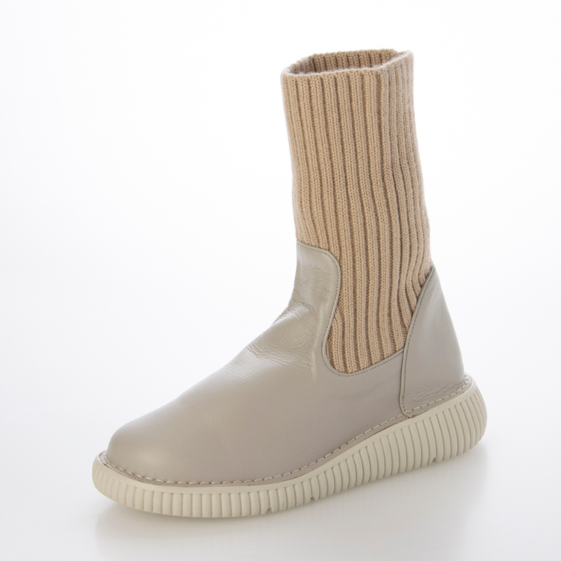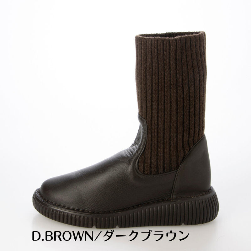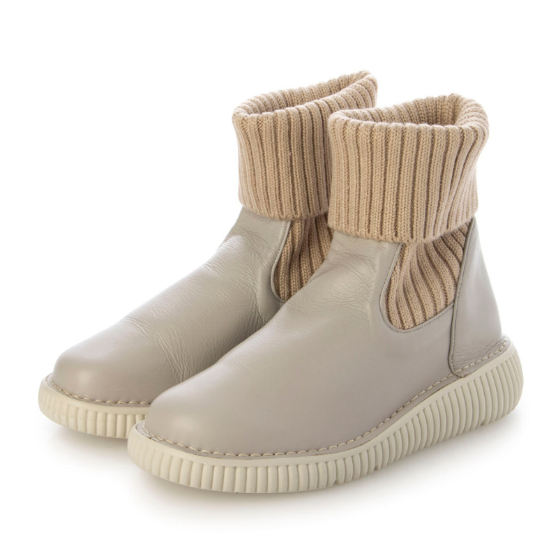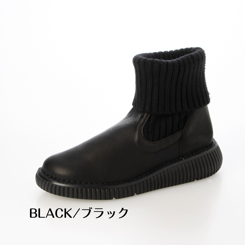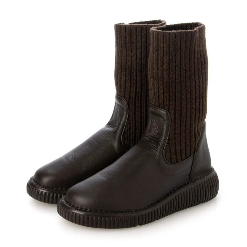 【日本製】やわらか本革×暖かニットブーツ EEEE